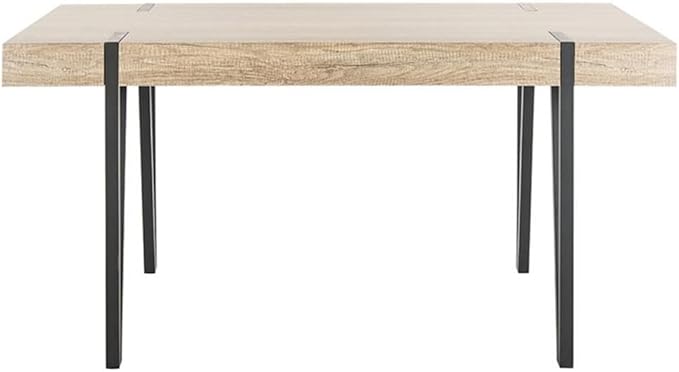 Világos tölgyfa asztal fekete acél lábakkal, modern dizájnban. Ideális 6-8 fő befogadására természetszerető családok számára.